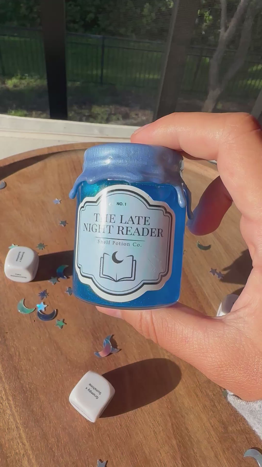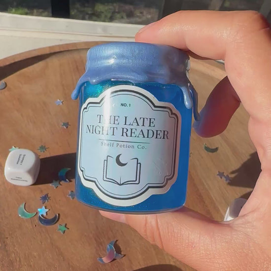 The Late Night Reader Dice Potion is your bookish decision-maker for those sleep-deprived spiral hours. Just ask what trope your next read should be, give it a shake, flip the bottle, and watch as your answer appears through the shimmer.